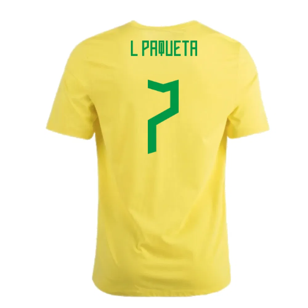 Official Lucas Paqueta football shirt. This is the NEW Brazil Crest Tee for the 2022-2023 season which is manufactured by Nike and is available in all Adult sizes.