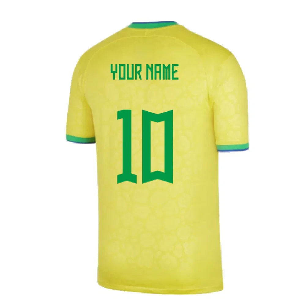 Official Your Name football shirt. This is the NEW Brazil Little Boys Home Shirt for the 2022-2023 season and World Cup which is manufactured by Nike and is available in all Childrens sizes.