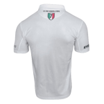 The design pays homage to the tradition of the White Tunic with the choice of a white jersey with a polo-type collar and V-neck on which is affixed a triangular Lycra insert on which the figure of the Lion stands out.