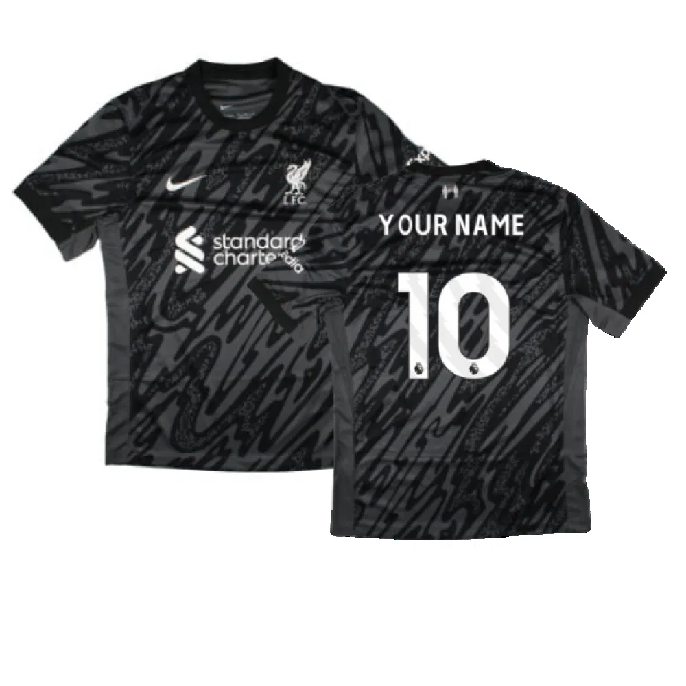 Official Your Name football shirt. This is the NEW Liverpool Home Goalkeeper Shirt (Black) for the 2024-2025 season which is manufactured by Nike and is available in all Adult sizes.