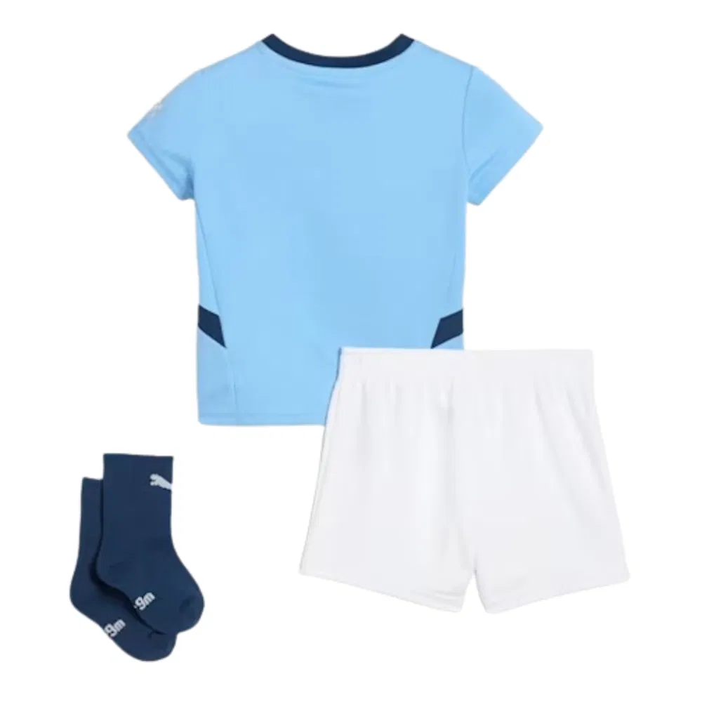 0161 is more than an area code. You’ll see it written on lampposts, printed on t-shirts, and tattooed on people. It’s an accent, a swagger, a sense of what being Mancunian is all about even if you aren’t Mancunian. This season, we thread 0161 through the trims of the 2024-2025 Home Kit and invite the world to wear it. From East Manchester to Istanbul, Northern Quarter to Norway, Moss Side to the other side of the world. If it’s Sky Blue, it’s 0161. That’s Manchester Calling. So, gear up your little one and show your allegiance to the team.