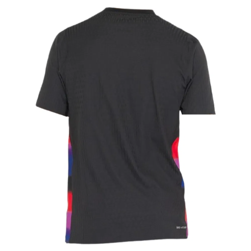 Featuring a bold black base with striking Light Photo Blue accents on the sleeves and side panels, the shirt delivers a modern, fearless look that stands out on the international stage. Nikes advanced Dri-FIT ADV technology ensures maximum breathability and moisture management, with strategically placed ventilation zones to keep you cool under pressure.
