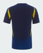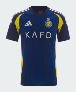 The Adidas Al-Nassr 2024-2025 away football shirt combines a navy base with white logos and 3 stripes plus yellow applications.