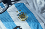 Argentina’s new 2022 shirt is predominantly white with black logos – including the brand-new Adidas logo, which will make its football debut with the 2022 World Cup kits. The stripes on the new Argentina 2022 World Cup home football shirt are classic, but just on the front. The back stripes are truly unusual – rather than featuring the same width, there are two thinner sky blue stripes in the center, with two wider ones on the outside of the shirt. These larger stripes are about three times as wide as the ones in the middle. It is supposed to look like the Argentinean flag. Also based on the flag, the Sol de Mayo, the national emblem of Argentina, appears on the back under the collar.