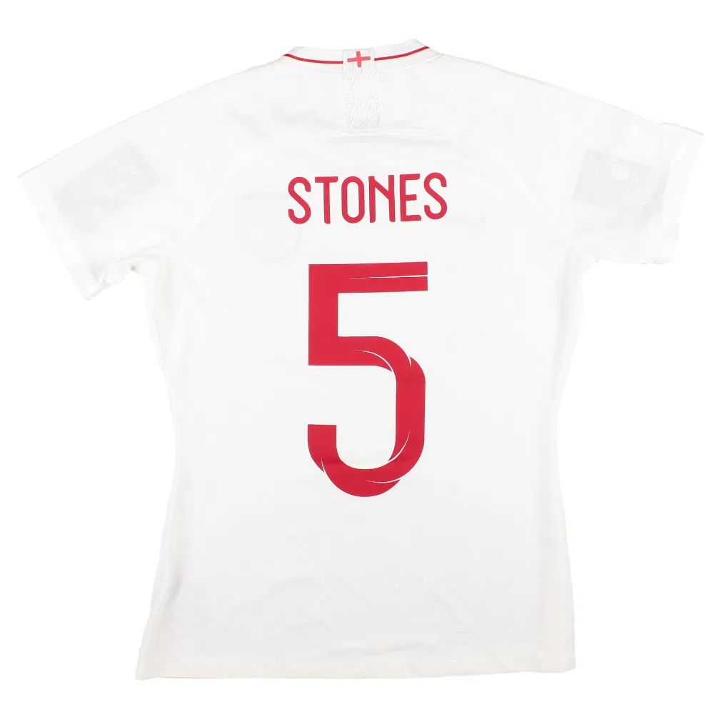 The England 2018-19 Home Shirt as worn by players such as Stirling, Lingard, Rashford, Alli and Kane as the team finished 4th in their group at the FIFA 2018 World Cup.