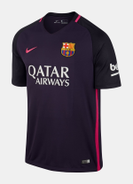 Based on Nike’s Vapor kit template, the Barcelona 2016-17 away kit is predominantly purple with dark navy sleeves and pink brandings.