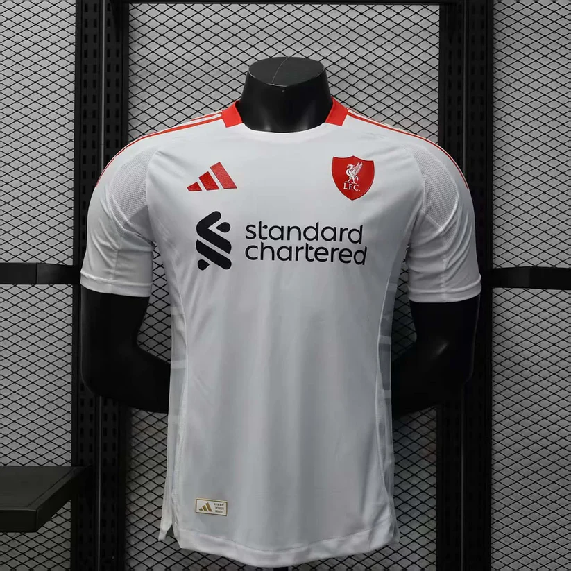 Step into Anfield tradition with the Liverpool 2025/26 Away Jersey, a modern classic crafted by Nike. This season’s kit pays homage to the club’s legendary history, featuring a deep Liverpool red base with white pinstripe accents and clean finishes. Engineered with Nike Dri-FIT ADV fabric, it delivers elite comfort and performance worthy of The Reds.