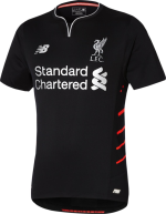 The new Liverpool 2016-17 Away Shirt combines the main color black with silver logos and applications, one of Liverpool’s most renowned away kit colors. It has a unique constructed collar and features four red lines on each side of the shirt.