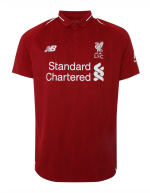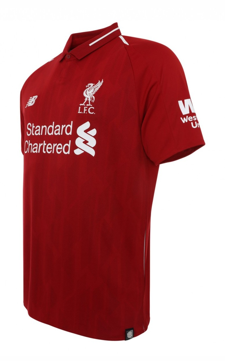 Predominantly dark red, just like this season’s Liverpool jersey, the 2018-2019 Liverpool home kit features white trim on the collar and shoulders. All logos on the front of the shirt are also white, including the traditional Liverbird logo.