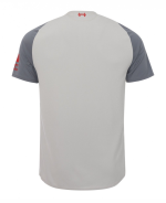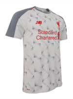 Based on the same template as the new home and away jerseys, the Liverpool 2018-2019 third shirt is light grey with red logos and ‘Grey Violet’ sleeves. A retro-inspired graphic pattern graces the entire front of the Liverpool 18-19 third jersey.