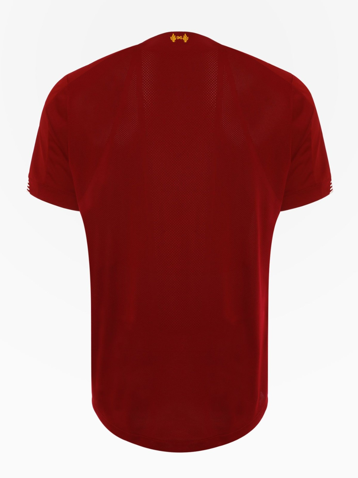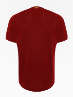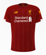 Liverpool’s 2019-20 home jersey once again features a pretty dark shade of red, while gold is used for the NB and LFC logos on the chest. The Western Union sponsor patch on the left sleeve of the Liverpool 19-20 kit is also gold, whilst the Standard Chartered print is white.