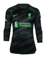 The Nike Liverpool Football Club 2023-24 goalkeeper home jersey combines anthracite & black base with ‘Poison Green’ logos.