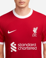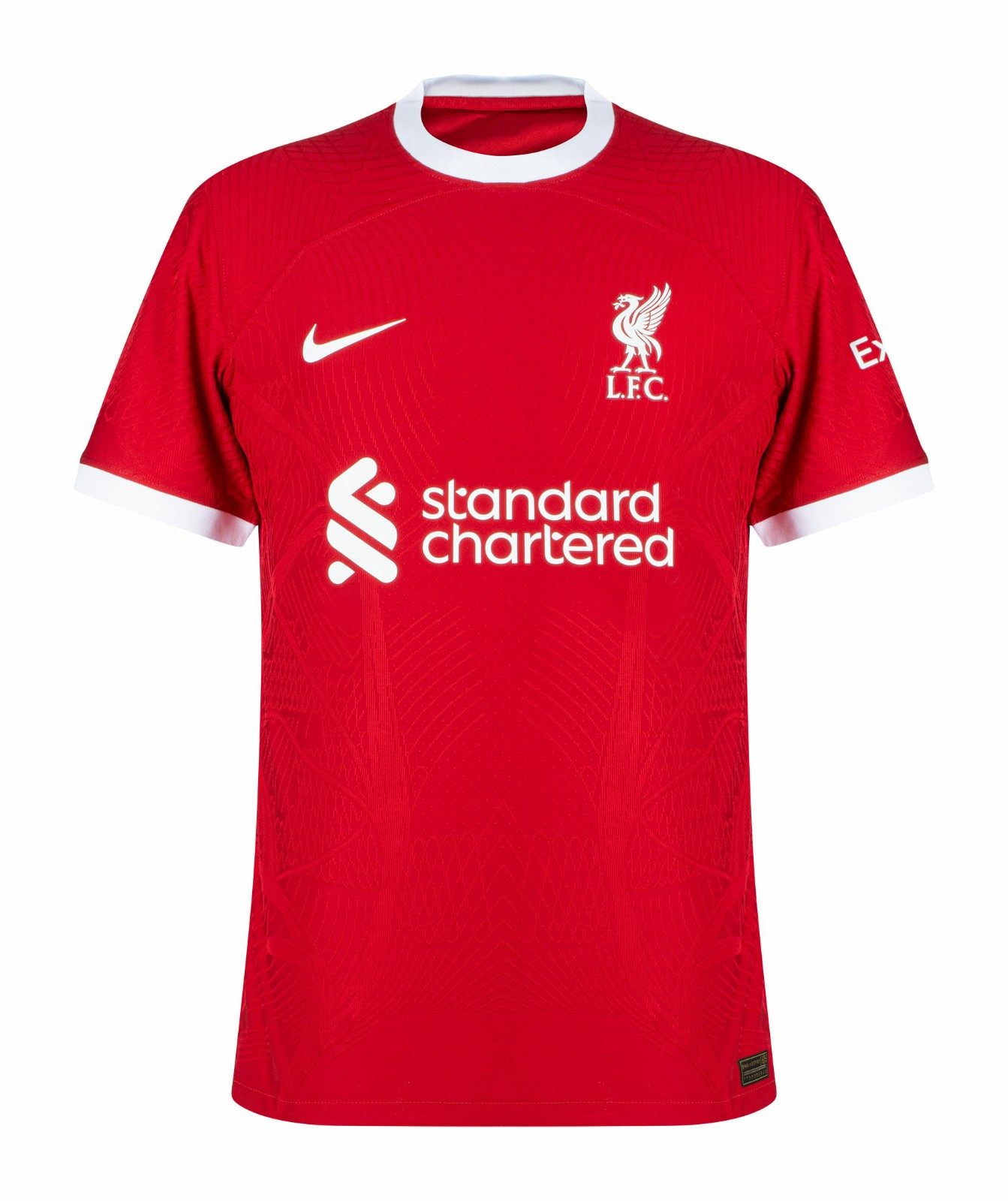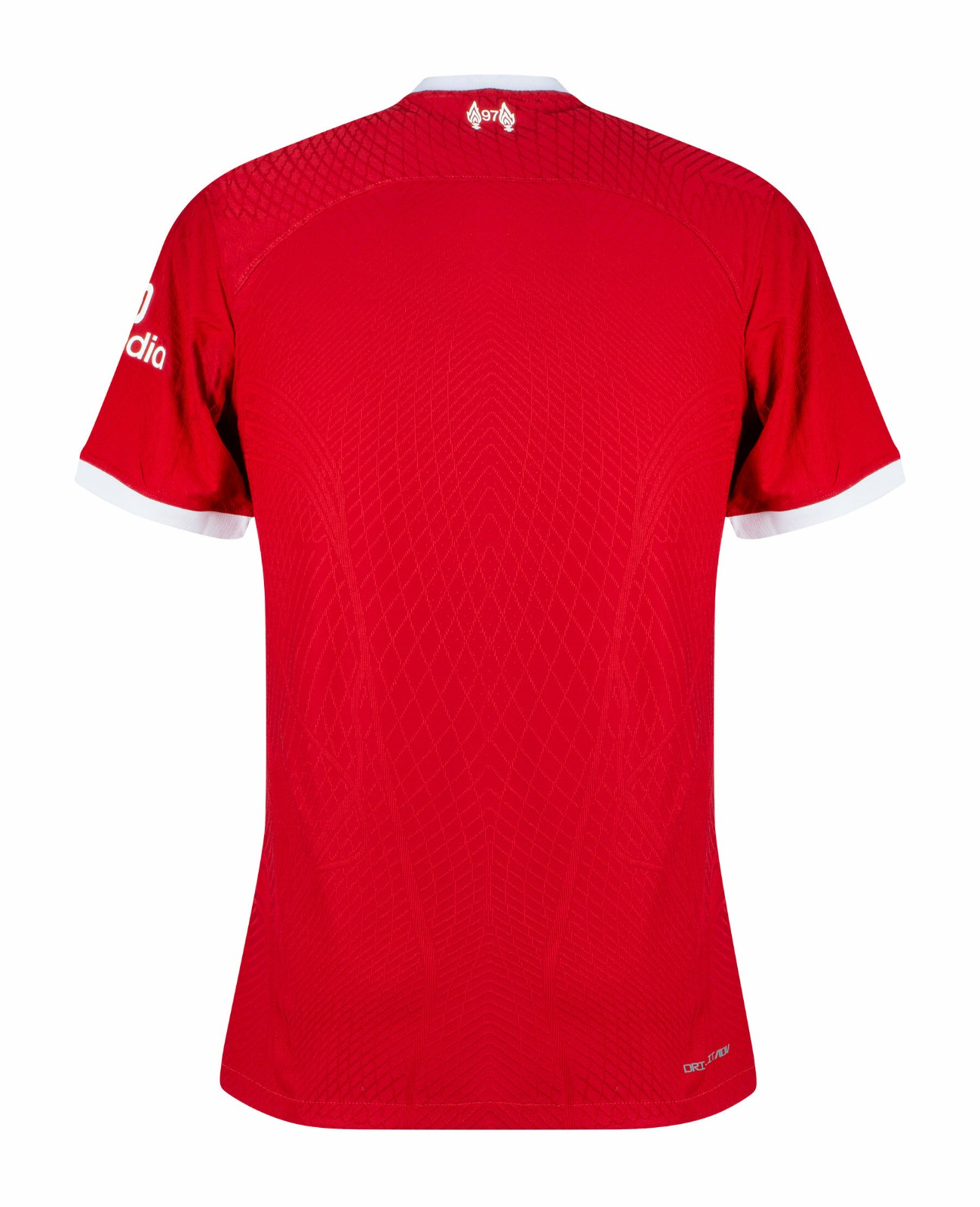 The Nike Liverpool 2023-24 home jersey has a very simple design, similar to their 22-23 home jersey. Based on the same Nike Dri-Fit ADV template as their 22-23 third jersey, the shirt has a two tone colourway in plain “gym red” and white.