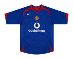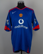 Wayne Rooney blue and red No.8 Manchester United short-sleeved shirt, 2004-05, Nike, XL, with v-neck collar and embroidered badge inscribed MANCHESTER UNITED, the reverse lettered ROONEY, the sleeves with Barclays Premiership flashes