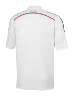 Real Madrid 14-15 Home Kit is mainly classical white / black and features pink details on the back (horizontal line) and a pink stripe on the side of the shirt. The badge of the Real Madrid 14-15 Home Kit was changed and features now a pink part. On the front of the kit appears an interesting stripe star pattern.