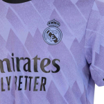 The Adidas Real Madrid 2022-23 away shirt is purple. The official color used is “Light Purple”, which is also featured on the 22-23 home kit.