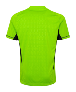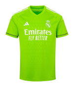 La camisa de portero del Real Madrid para la temporada 2023-2024 está diseñada por Adidas y presenta un color verde distintivo. Está confeccionada en poliéster reciclado y cuenta con tecnología AEROREADY para mantener la piel seca y fresca durante los partidos. La camiseta tiene un corte entallado que se ajusta al cuerpo y un cuello de pico de canalé. Además, incluye inserciones elásticas en los costados para mejorar la libertad de movimiento.